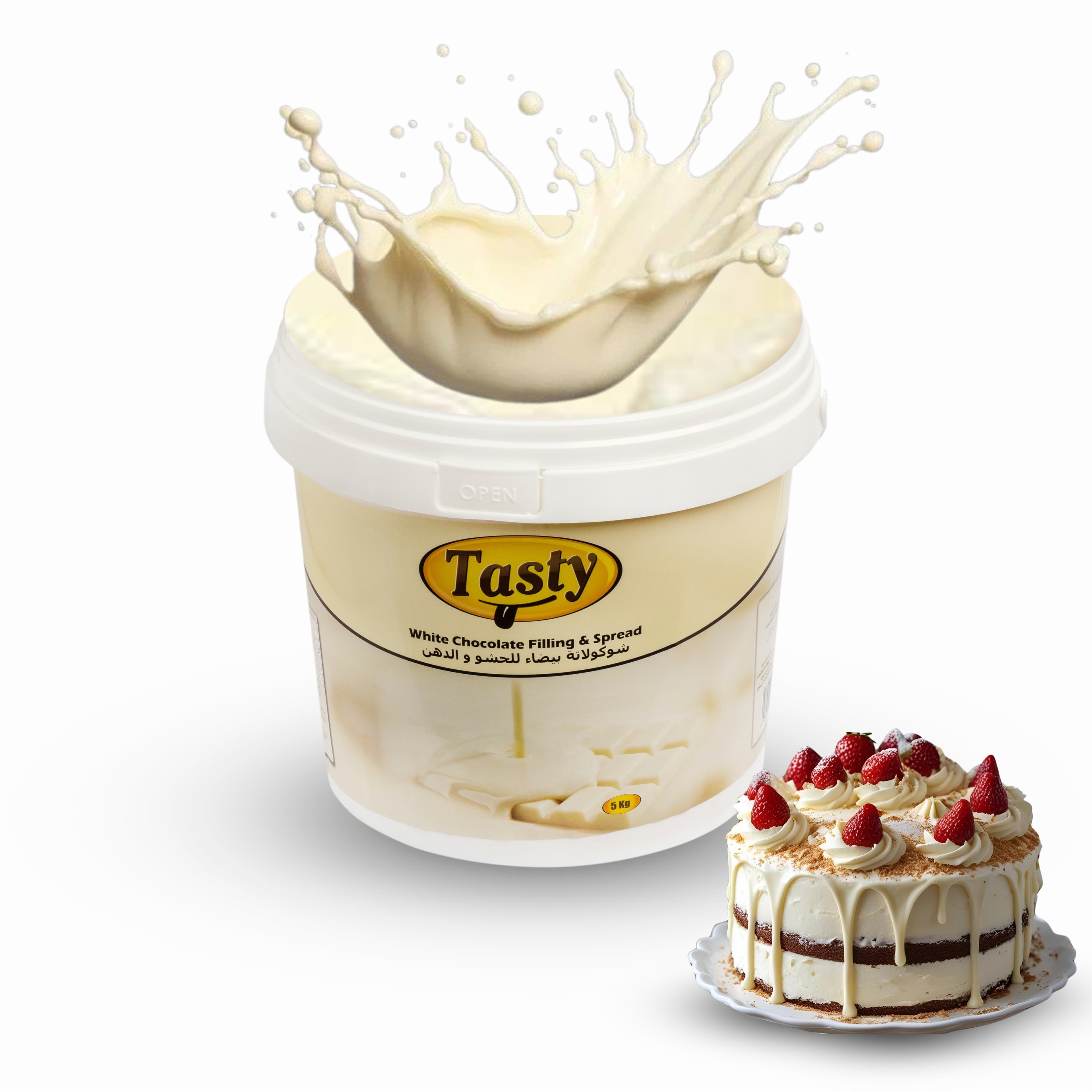 🍫 صوص الوايت شوكليت (White Chocolate Sauce)صوص الوايت شوكليت هو صوص كريمي وناعم يستخدم في تزيين الكيك، التشيز كيك، الكريب، البان كيك، القهوة، أو حتى كحشوة خفيفة. يتميّز بنكهته الغنية والناعمة، وقوامه الحريري.